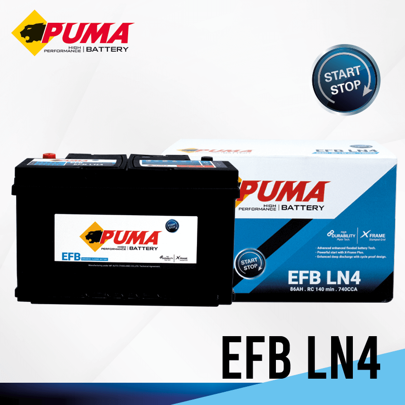 PUMA EFB (Enhance Flood Battery) เป็นแบตเตอรี่ที่รองรับระบบ ISS ( Intelligent Start Stop System) และระบบไดชาร์จอัฉริยะ AMS (Alternator Management System) แบตเตอรี่จะทำหน้าที่จ่ายกระแสไฟฟ้าให้กับระบบไฟฟ้าในรถยนต์ ขณะที่เครื่องยนต์หยุดทำงาน เช่่น จอดติดไฟแดง รอกลับรถ และอื่นๆ